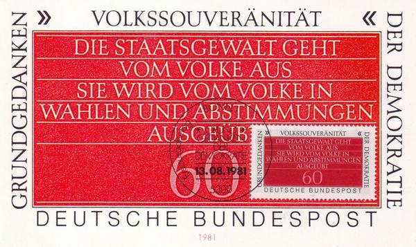 Nun erwarten wir Ihre geschätzte Antwort auf die »Gretchenfrage«, damit die Bürgerschaft erfährt, wie die Abgeordneten des 17. Deutschen Bundestages über das Anliegen der Petition, das Selbstbestimmungsrecht des Volkes zu den Sachfragen des politischen Lebens denken und wie sie zum Regelungsvorschlag der Petitionsgemeinschaft »Wir sind das Volk-2009« stimmen werden – wie es uns schon am 13. August 1981 durch die Deutsche Bundespost mit der Sondermarke »Grundgedanken der Demokratie« ans Herz gelegt worden ist.