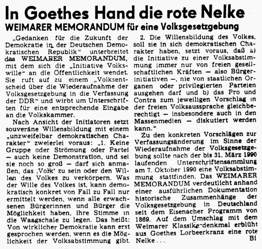 Thüringer Tagblatt, Weimar, 22. November 1989